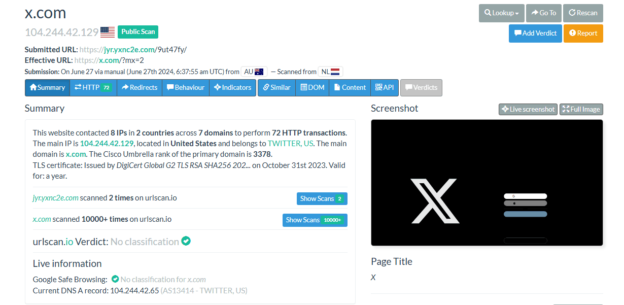 I noticed that when inputting these domains into URLSCAN I getting re-directed to websites such as X, Amazon and Walmart.